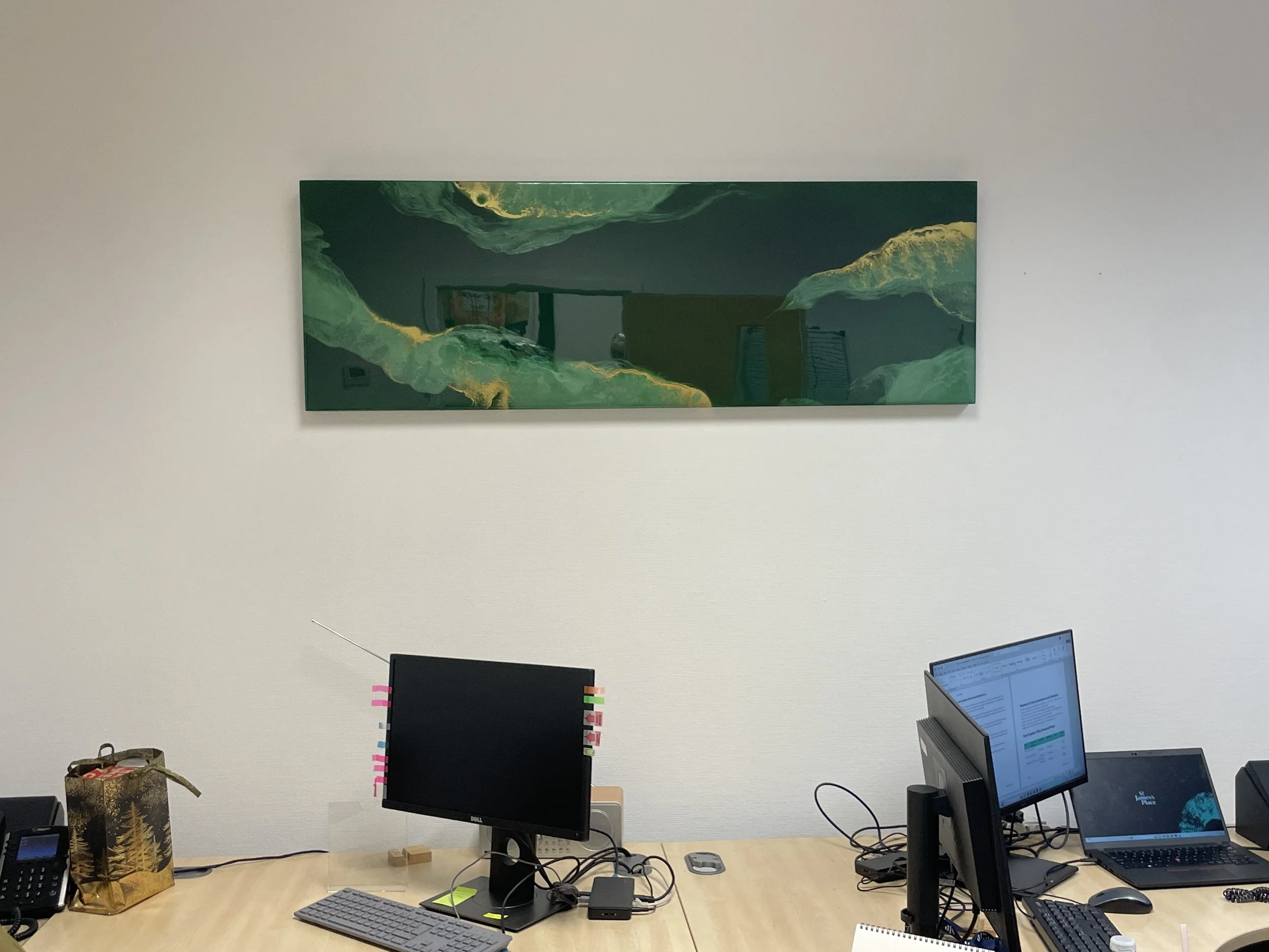 I always love seeing my art in their forever homes! These are photos received from clients showing my artwork in their new home or commercial space.